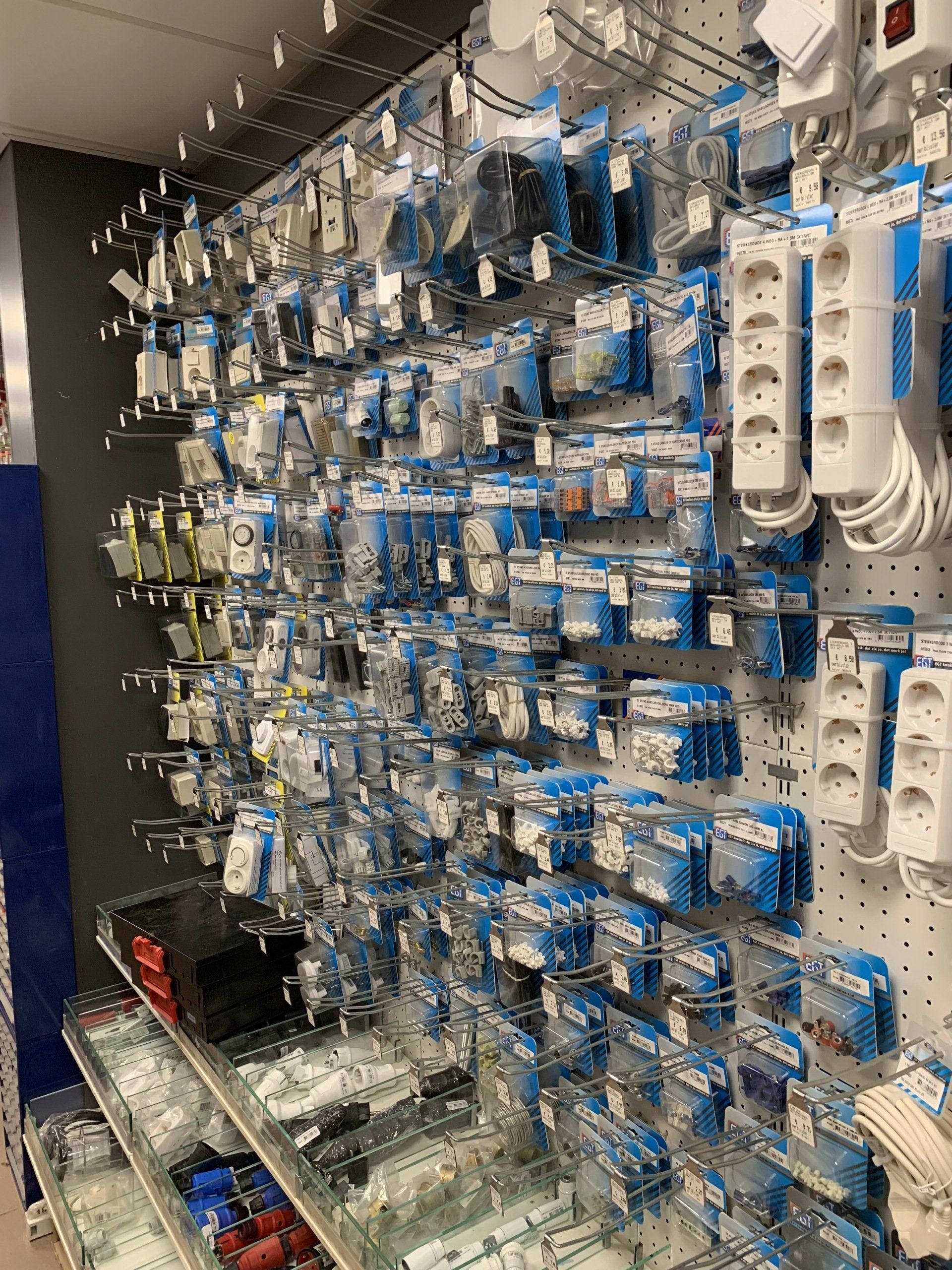 Stekers, verlengsnoeren, kroonstenen, inbouwdozen, kabel, deurbellen etc.